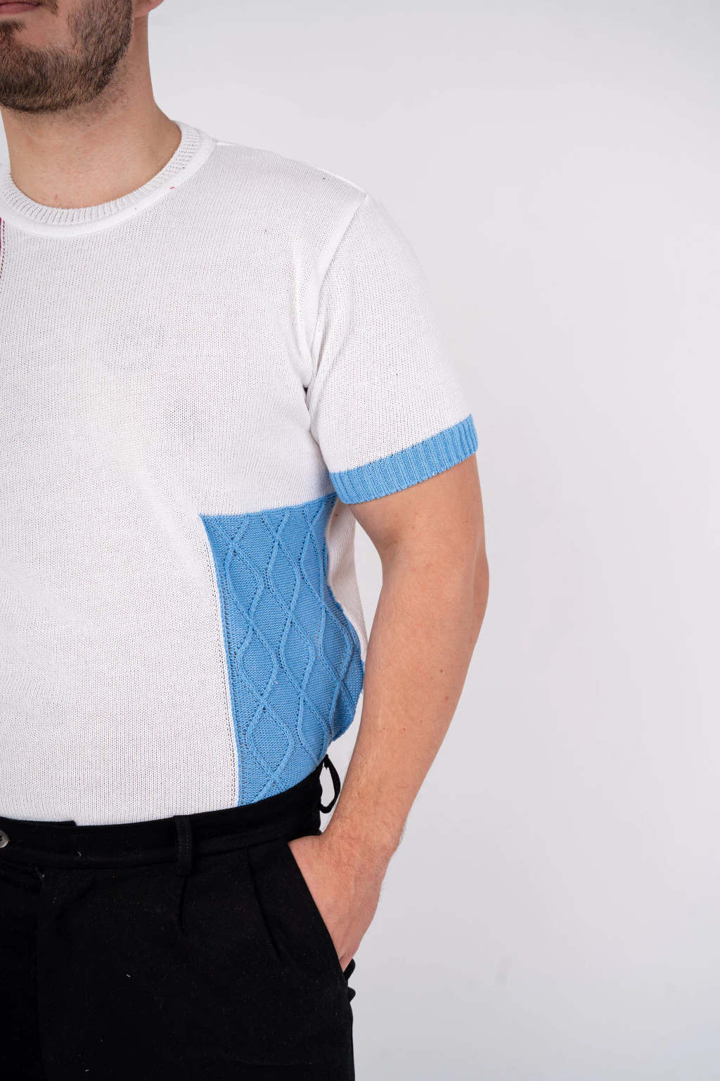 ¡Descubre la Playera Tejida con Diseño de Parches! Esta prenda es la opción perfecta para quienes buscan un estilo fresco y único que resalte su personalidad en cualquier ocasión.