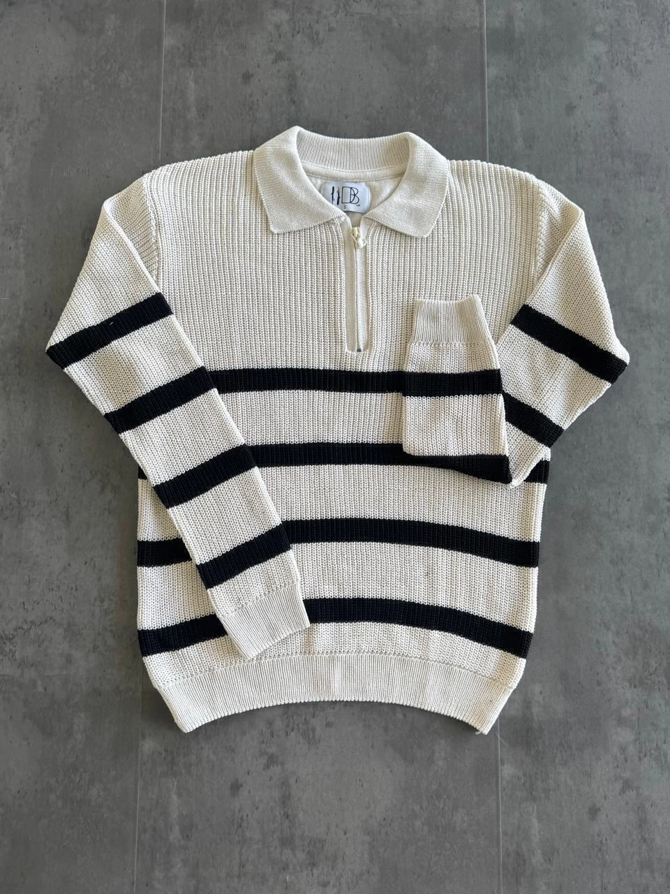 Ya sea que lo combines con jeans para un look relajado o con pantalones más elegantes para una salida especial, este suéter se adapta a cualquier estilo. Su diseño en rayas añade ese toque de dinamismo que refresca tu guardarropa y te permite expresar tu personalidad con confianza.